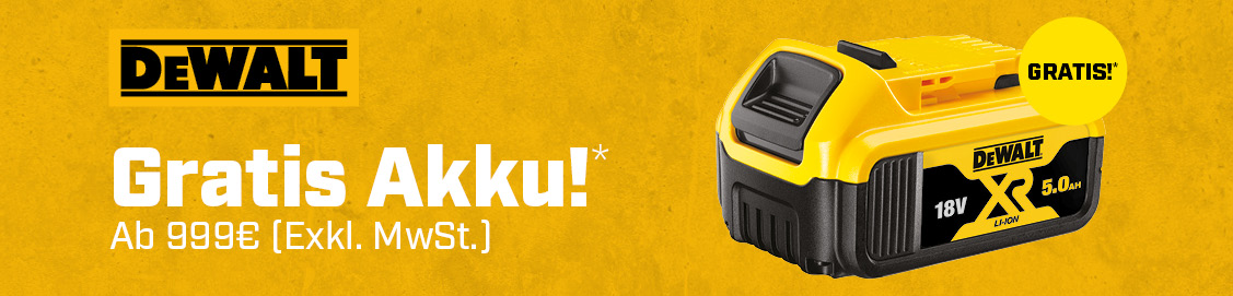 Legen Sie für €999,- (exkl. MwSt.) an unten aufgeführtes Dewalt Werkzeug und/oder Zubehör in Ihrem Warenkorb, und das gratis Akku wird automatisch Ihrem Warenkorb hinzugefügt.