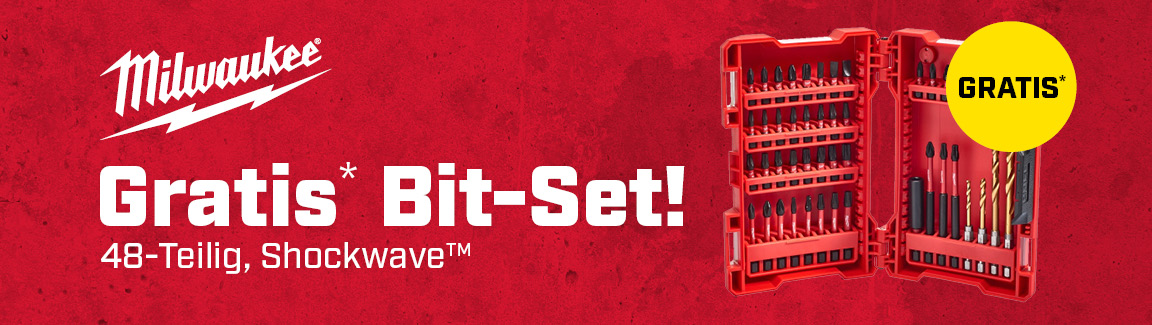 Legen Sie für mindestens €699,- (exkl. MwSt.) an Milwaukee Werkzeug in Ihren Warenkorb uns es wird ein 48-teiliges Shockwave Bit-Set automatisch an Ihrem Warenkorb hinzugefügt.