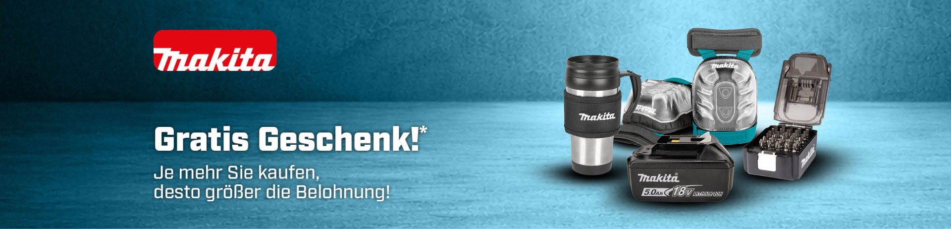 *Je höher der Einkaufswert, desto größer das Geschenk. Diese Aktion gilt für das gesamte Makita-Sortiment, einschließlich (Akku-)Maschinen, Gartengeräte, Aufbewahrungssysteme und Zubehör. Kurz gesagt: Alles von Makita ist dabei! Kombinieren Sie Ihre Lieblingsprodukte und sichern Sie sich ein Geschenk. Verpassen Sie diese einmalige Gelegenheit nicht!
